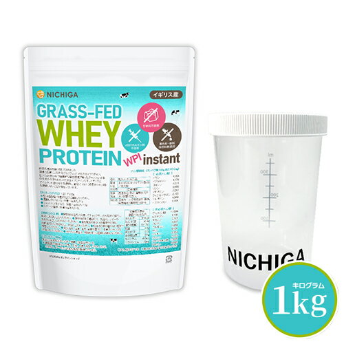 【メール便不可】<シェイカー セット> グラスフェッド ホエイプロテイン WPI instant (イギリス産) 1kg rBST不使用 高たんぱく 甘味料不使用・保存料無添加 NICHIGA(ニチガ) TK1