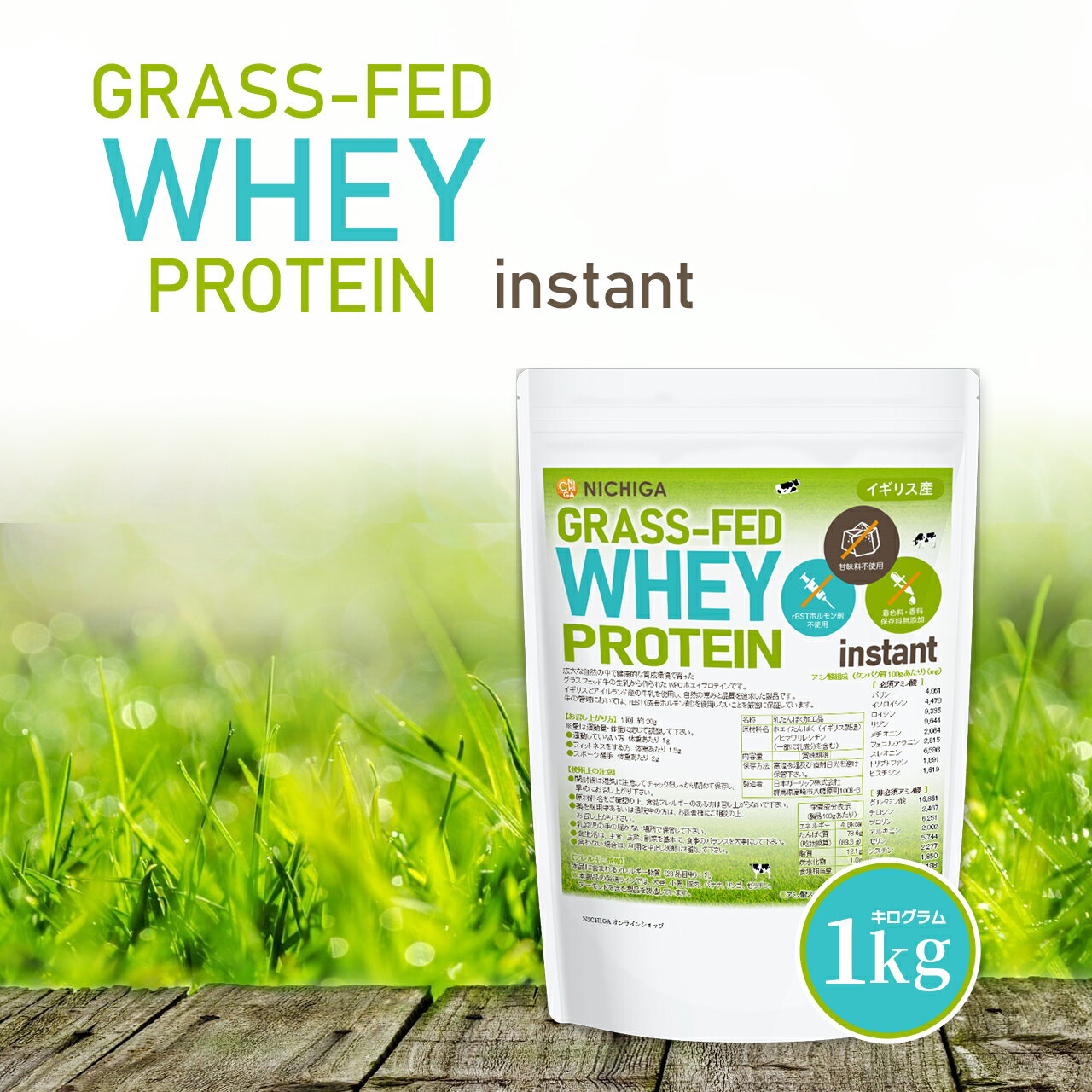 【メール便不可】GRASS-FED WHEY PROTEIN instant(イギリス産) 1kg rBSTホルモン剤不使用 甘味料不使用 着色料・香料・保存料無添加 WPC 自然の恵み NICHIGA(ニチガ) TK0