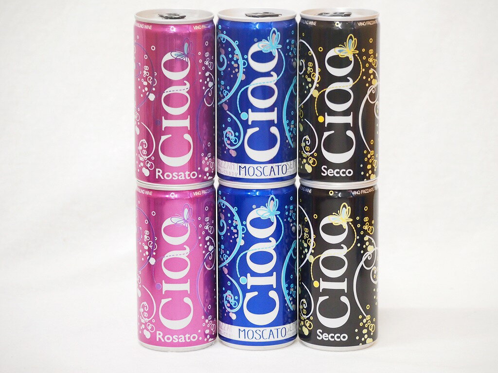 お誕生日 贈り物 御進物 ギフト包装 熨斗 メッセージカード無料飲みきりイタリアワイン缶6本セット(チャオ モスカート 甘口微発泡白ワイン チャオ ビアンコ 辛口微発泡白ワイン チャオ ロザート やや辛口微発泡ロゼワイン) 200ml×6本