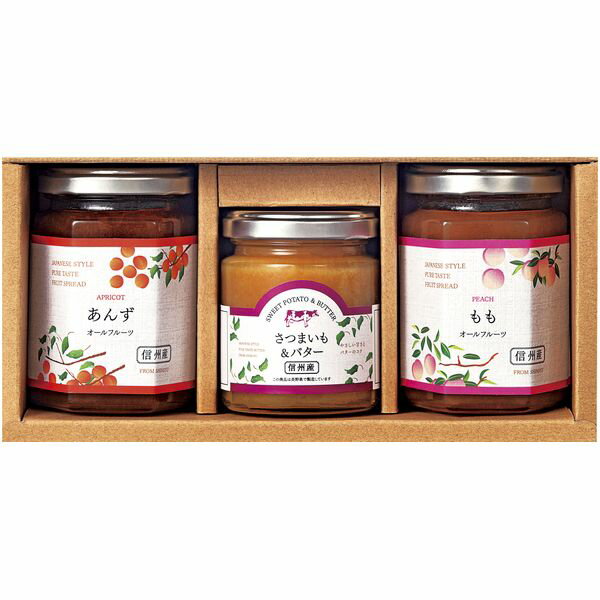 ●商品名/スプレッド&バターペーストセット CN-3B●商品内容/(あんずスプレッド・ももスプレッド)各140g・さつまいも&バターペースト110g×各1●賞味期限/製造日より360日●アレルゲン/乳成分●生産国/日本●重量/約930gバラエティ豊かなセットで、お菓子作りのアレンジや料理のアクセントにもご使用頂け、料理の幅が広がります。 スプレッドは砂糖を使わずに仕上げました。トーストに塗ったり、ヨーグルトにかけて、ペーストはトーストに塗るだけじゃなくお菓子作りのアレンジにも使用できます。ドレッシングは、サラダだけでなく、いろんな料理のアクセントとしても最適です。※メーカー都合により、デザイン・内容等が変更になる場合がございます。 ギフトのことならジャパンギフトにおまかせ下さい。様々なギフトシーンに。内祝 内祝い お祝い返し ウエディング ウェディングギフト ブライダルギフト 引き出物 引出物 結婚引き出物 結婚引出物 結婚内祝い 出産内祝い 命名内祝い 入園内祝い 入学内祝い 卒園内祝い 卒業内祝い 就職内祝い 新築内祝い 引越し内祝い 快気内祝い 開店内祝い 二次会 披露宴 お祝い 御祝 結婚式 結婚祝い 出産祝い 初節句 七五三 入園祝い 入学祝い 卒園祝い 卒業祝い 成人式 就職祝い 昇進祝い 新築祝い 上棟祝い 引っ越し祝い 引越し祝い 開店祝い 退職祝い 快気祝い 全快祝い 初老祝い 還暦祝い 古稀祝い 喜寿祝い 傘寿祝い 米寿祝い 卒寿祝い 白寿祝い 長寿祝い 金婚式 銀婚式 ダイヤモンド婚式 結婚記念日 ギフト ギフトセット セット 詰め合わせ 贈答品 お返し お礼 御礼 ごあいさつ ご挨拶 御挨拶 プレゼント お見舞い お見舞御礼 お餞別 引越し 引越しご挨拶 記念日 誕生日 父の日 母の日 敬老の日 記念品 卒業記念品 定年退職記念品 ゴルフコンペ コンペ景品 景品 賞品 粗品 お香典返し 香典返し 志 満中陰志 弔事 会葬御礼 法要 法要引き出物 法要引出物 法事 法事引き出物 法事引出物 忌明け 四十九日 七七日忌明け志 一周忌 三回忌 回忌法要 偲び草 粗供養 初盆 供物 お供え お中元 御中元 お歳暮 御歳暮 お年賀 御年賀 残暑見舞い 年始挨拶 人気 老舗 話題 のし無料 メッセージカード無料 ラッピング無料 大量注文 福袋などギフト以外のご自宅用商品も多数。バレンタインデー バレンタイン ひなまつり ホワイトデー 七夕 ハロウィン 七五三 クリスマスなどのイベント用ギフトも。年代別 10代 20代 30代 40代 50代 60代 70代 80代 90代まで幅広く取り揃え。ご予算別には100円 500円 1000円 1500円 2000円 2500円 3000円 4000円 7000円 5000円 10000円 15000円 30000円など低額から高額品まで。