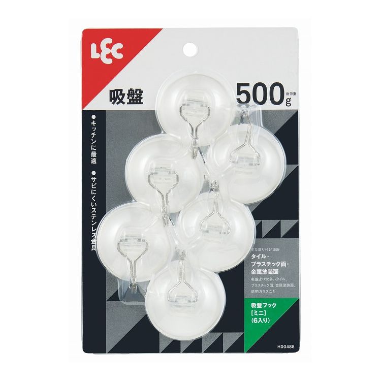 付け外しの簡単な吸盤タイプのフック6個入。小物の吊り下げ収納にピッタリ。フック部分はさびにくいステンレス製。1個あたりサイズ(約)幅4×奥行1.5×高さ5cm材質:吸盤/塩化ビニル樹脂 フック/ステンレス鋼線1個あたり耐荷重(約):500g【代引きについて】こちらの商品は、代引きでの出荷は受け付けておりません。【送料について】北海道、東北、九州は送料を頂きます。沖縄、離島は配送不可。