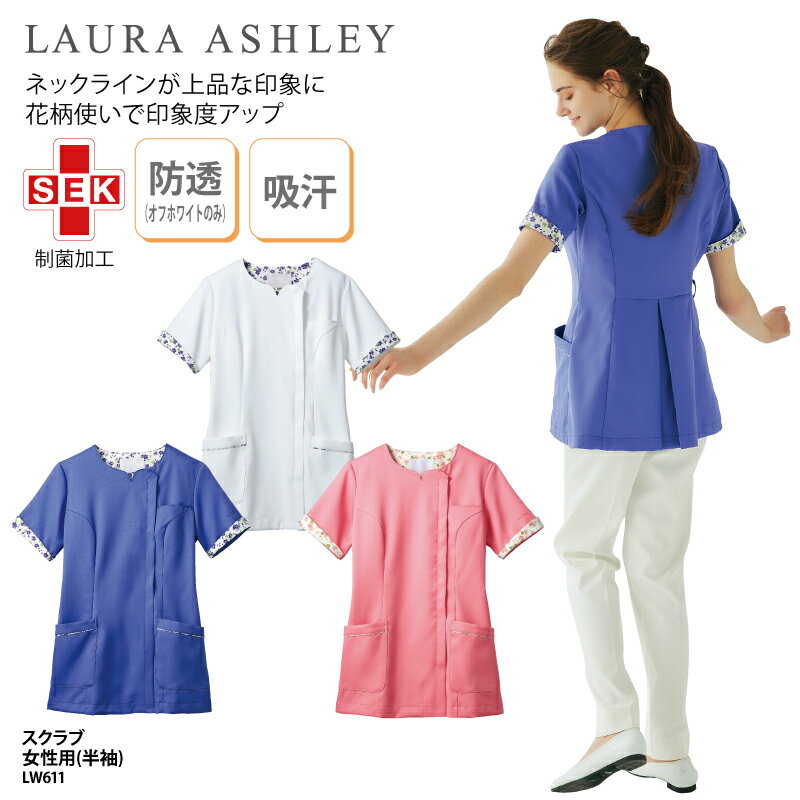さりげない花柄がアクセントのスクラブ!スクラブ LAURA ASHLEY ローラアシュレイ レディス 女性用 白衣 医療 メディカル 看護 ナースウェア 介護 ケアワーク ユニフォーム 花柄 SEK カテゴリー LW603