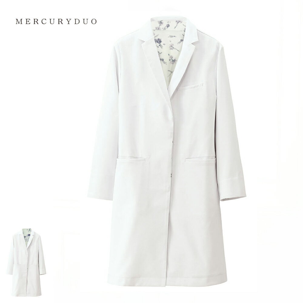 覗くフラワープリントで、優美。マーキュリーデュオのドクターコート。マーキュリーデュオ ドクターコート【医療 ナース 看護 白衣 女性 医師 病院 ナースリー 人気 おすすめ】MD2521