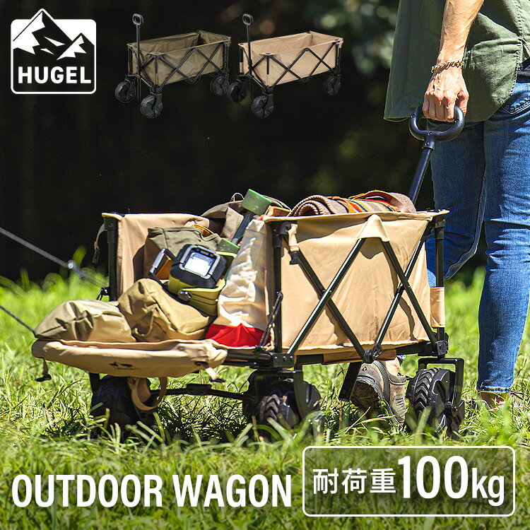 背面フラットで積載量50%UP。悪路に強い極太タイヤ。耐荷重100kg。コンパクト収納。「道具をこだわると、アウトドアはもっと楽しい。」総合メーカー「アイリスオーヤマ」がお届けするアウトドアブランド“HUGEL(ヒューゲル)”。アウトドアが好きな方にも、これからはじめる方にも。「あったら便利」を追求したアイテムをご提案。少しの工夫でちょっと便利に。もっと楽しく。◆ かさばる荷物を一度に運べる収納力と耐久性に優れたアウトドアワゴン。一度にたっぷり運べて、荷物運びの時間を大幅に短縮できます。◆ 背面フラットで収納力アップテントやサンシェードなどの長物もお任せ!ワゴン背面が開くから、大きな荷物もどっさり積み込める。◆ 耐荷重約100kg頑丈なフレームで耐久性に優れた設計。キャンプギアを大量に積み込んでも安心。◆ 極太タイヤで悪路に強い幅広で安定性の高い大型タイヤを採用。デコボコ道やぬかるみなどの悪路もパワフルに乗り越える。◆ 持ちやすいハンドル手に馴染んで握りやすいドーナツ型ハンドル。長さは2段階調節が可能。◆ コンパクト収納ワゴン底の取っ手を引き上げるだけのワンタッチ収納。コンパクトに畳めるから、置き場所に困らない。●材質生地部:ポリエステルフレーム:スチール(エポキシ樹脂塗装)●製品寸法(cm)使用時:幅約98×奥行約53×高さ約61後方面開放時:幅約126ハンドル使用時:幅約102収納時:幅約40×奥行約25.5×高さ約77●製品質量(付属品含む)約11.5kg●耐荷重約100kg●付属品底板、カバー(検索用:アウトドア ワゴン キャリーワゴン キャリーカート マルチキャリー 台車 折りたたみ 荷物 運搬 キャンプ 収納 4967576551199 4967576551205) 関連キーワード(本商品の説明ではありません)母の日 父の日 敬老の日 こどもの日 クリスマス バレンタイン ホワイトデー ハロウィン お正月 成人の日 成人式 記念日 誕生日 卒業式 入学式 お歳暮 お中元 春 夏 秋 冬 梅雨 節分 ひな祭り 七夕 十五夜 初詣 年越し 夏祭り 花火大会 結婚祝い 内祝い 出産祝い 快気祝い 還暦祝い 古希 喜寿 傘寿 米寿 卒寿 白寿 百寿 新築祝い 引っ越し祝い 開店祝い 開業祝い 就職祝い 昇進祝い 合格祝い 銀婚式 金婚式 七五三 長寿祝い 御礼 お母さん お父さん 義母 義父 祖父 祖母 おばあちゃん おじいちゃん 娘 息子 彼氏 彼女 恋人 友達 上司 先輩 後輩 同僚 キッズ 子供 幼児 ベビー 赤ちゃん 育児 学生 社会人 シニア 10代 20代 30代 40代 50代 60代 70代 80代 90代 一人暮らし 単身赴任 主婦 主夫 新生活 家族暮らし 子育て 旅行 トラベル ライブ ホームパーティ ビジネス 法人 ギフト プレゼント 最強翌日配送対象商品に関するご案内 最強翌日配送対象商品・対象地域に該当する場合は最強翌日配送マークがご注文カゴ近くに表示されます。 最強翌日配送可能なお支払方法は【クレジットカード、代金引換、全額ポイント支払い】のみとなります。 下記の場合は最強翌日配送対象外となります。 ・15点以上ご購入いただいた場合 ・時間指定がある場合 ・ご注文時備考欄にご記入がある場合 ・決済処理にお時間を頂戴する場合 ・郵便番号や住所に誤りがある場合 ・最強翌日配送対象外の商品とご一緒にご注文いただいた場合 ・お届け先住所文字数が40文字以上の場合