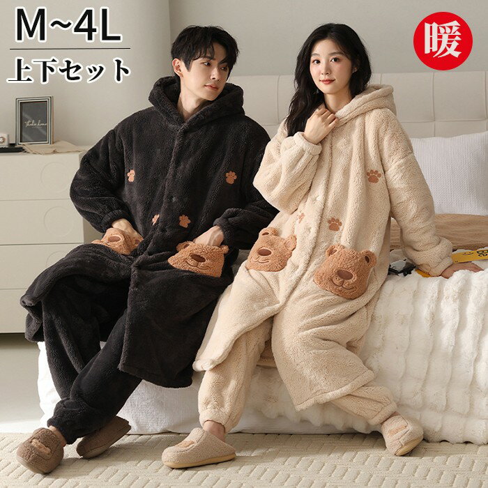 熊柄 ルームウェア ペアパジャマ パジャマ 部屋着 寝間着 寝巻き ペア もこもこ もこふわ 暖かい 大量注文にも対応しています。送料無料 ペア パジャマ ルームウェア 冬 可愛い もこもこ 着る毛布 クマ柄 部屋着 寝間着 寝巻き もこふわ 暖かい ペアルック カップル 耳 フード付き 上下セット ゆったり 結婚祝い お家時間 ナイトウェア 夫婦 お揃い 長袖 可愛い 韓国風 M L XL 2XL ベージュ 茶色
