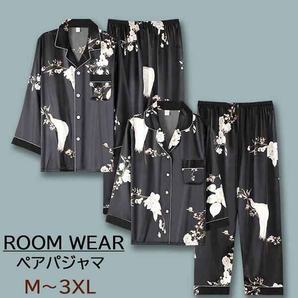 M-4L ペアパジャマ 春夏 秋冬 前開き ナイトウエア ルームウェア 長袖ペアパジャマ 春夏 秋冬 前開き ナイトウエア ルームウェア 長袖 プレゼント メンズ レディース パジャマ ペアルック カップル 可愛い かわいい 黒 花柄 おしゃれ 結婚祝い 母の日 プレゼント 大きいサイズ クリスマスdb240s1s1g5