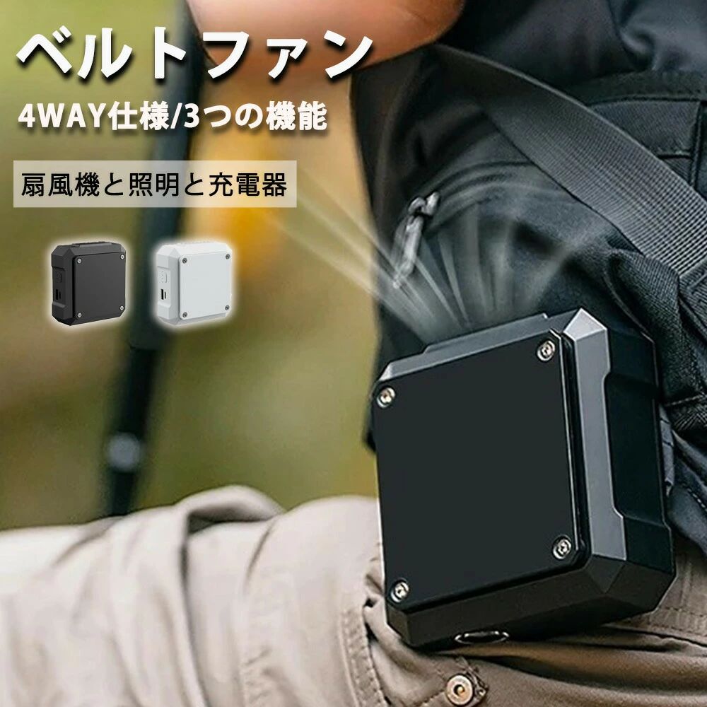 ベルトファン 腰掛け扇風機 4000mAh 腰ベルトファン ライトつきベルトファン 腰掛け扇風機 ライトつき 照明 腰掛け ファン 腰ベルトファン 4000mAh モバイルバッテリー 送風機 携帯扇風機 USB充電式 ストラップ付 ハンズフリー アウトドア 配達員 外仕事 熱中症 暑さ対策