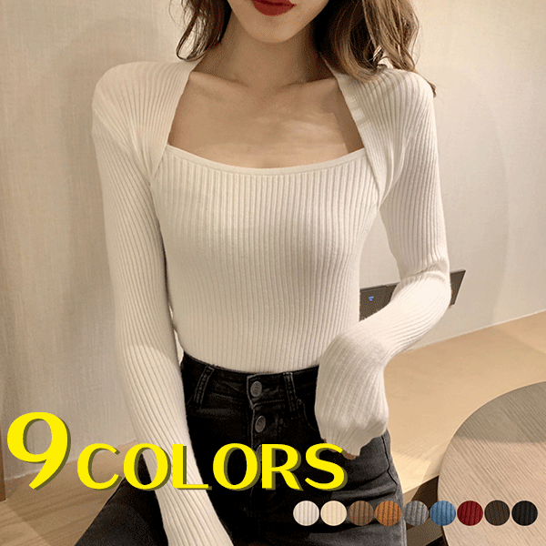 シンプルでもかっこよくおしゃれに着こなせるリブニット スクエアネックがデコルテラインを綺麗に見せてくれて、顔周りがすっきりとしたシルエットに\クーポン配布/ ニットトップス レディース リブニット スクエアネック きれいめ ニット レディース リブ ニットソー トップス 長袖 シンプル プルオーバー ニットセーター タイトニット 無地 きれいめ トップス 着やせ トップス