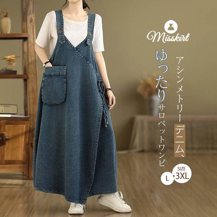 【送料無料◎宅配便発送】デニム サロペット ワンピース レディース 新作 ジャンパースカート デニムワンピース 無地 オールインワン アシンメトリー デザイン感 ロング ゆったり レトロデニム サロペット ワンピース レディース 新作 ジャンパースカート デニムワンピース 無地 オールインワン アシンメトリー デザイン感 ロング ワンピ 春 夏 秋 ゆったり 体型カバー 着痩せ レトロ カジュアル 重ね着 通勤 OL 大人 大きいサイズ お洒落 可愛い 送料無料