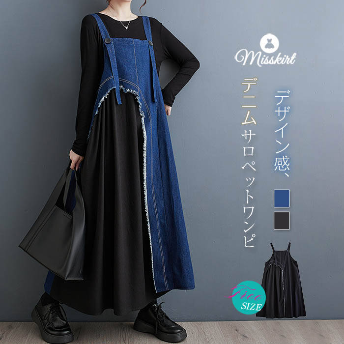 ジャンパースカート サロペット レディース デニムワンピース ロングワンピース マキシワンピースジャンパースカート サロペット ワンピース デニムワンピース ロングワンピース マキシワンピース レディース デニムワンピ キャミワンピース レイヤード 重ね着 Aライン 体型カバー オーバーオール ゆったり 大きいサイズ カジュアル 無地 春 夏 秋