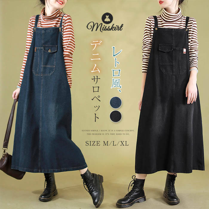 【送料無料◎宅配便発送】サロペット ワンピース ジャンパースカート レディース デニム 無地 オールインワン ジャンパー スカート ロング ワンピ 春 秋 ポケット ゆったり 体型カバーサロペット ワンピース ジャンパースカート レディース デニム 無地 オールインワン ジャンパー スカート ロング ワンピ 春 秋 ポケット ゆったり 体型カバー 着痩せ レトロ カジュアル 重ね着 通勤 OL 大人 大きいサイズ お洒落 20代 30代 40代 50代 切り替え 送料無料