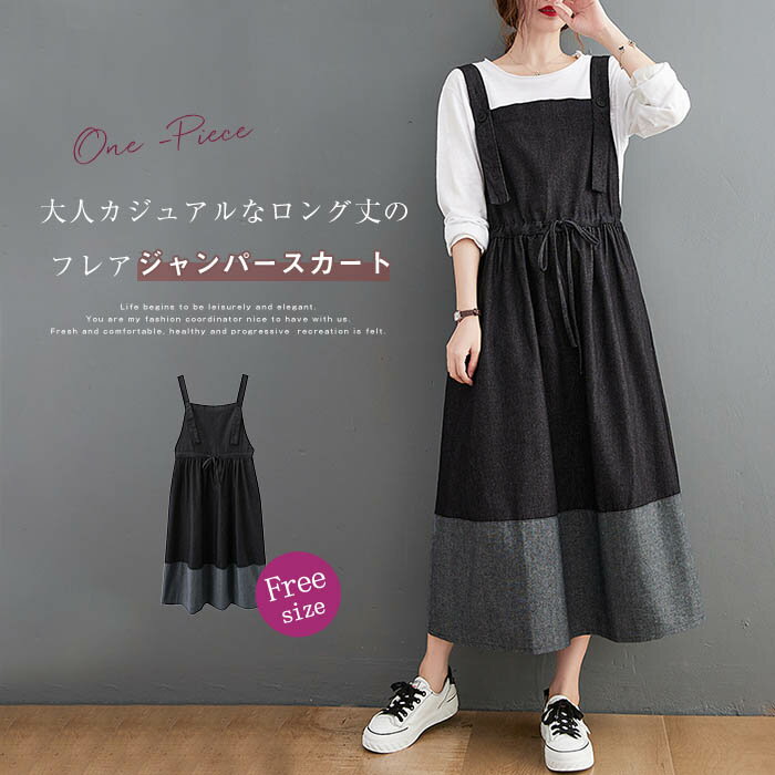 カジュアルなイメージの強いジャンパースカートにジャケットを合わせれば、一気に通勤スタイルに変わります。 シーズンレスで活用できる上に手軽に大人っぽいモードな印象を表現できます。上半身をスッキリ見せつつ、ウエスト位置が隠れるので脚長効果も抜群です! 素材:95%ポリエステル ★サイズ(cm) Free 着丈100 肩紐72 ウエスト192 裾周り290; ※サイズは人の手によって測っているため、1-3の誤差がある場合がございます。予めご了承下さいませ。 ★カラー:ブラック。 ※店頭及び屋外での撮影画像は、光の当たり具合で色味が違って見える場合があります。またご覧いただきますモニターや使用環境により実際の商品と多少色味が異なって表示される場合がございます。素材:95%ポリエステル ★サイズ(cm) Free 着丈100 肩紐72 ウエスト192 裾周り290; ※サイズは人の手によって測っているため、1-3の誤差がある場合がございます。予めご了承下さいませ。 ★カラー:ブラック。 ※店頭及び屋外での撮影画像は、光の当たり具合で色味が違って見える場合があります。またご覧いただきますモニターや使用環境により実際の商品と多少色味が異なって表示される場合がございます。