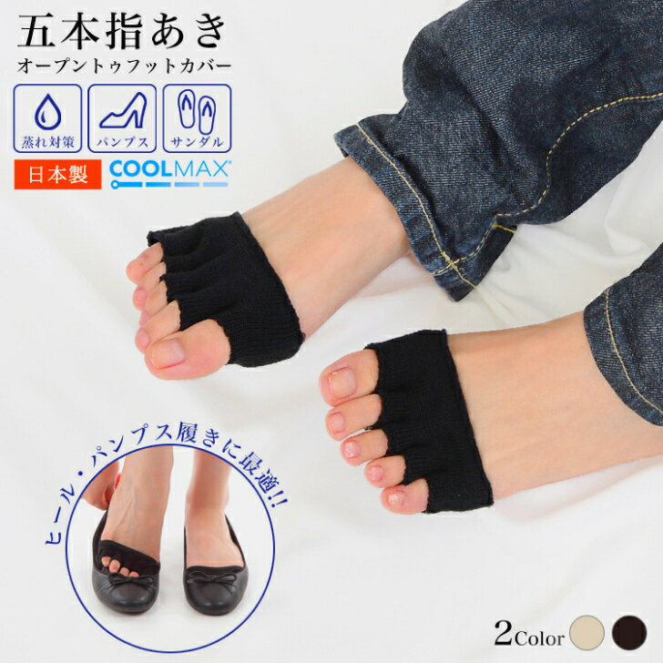 送料無料*商品到着後、商品レビューを書いてクーポンプレゼント日本製 5本指オープントゥフットカバー 天然繊維 つま先 1000円ポッキリ COOLMAX 1足分 ベージュ ブラック 5本指の靴下 吸収速乾 蒸れ ムレ 臭い フット ケア レディース ひんやり 重ね履き 薄い 快適