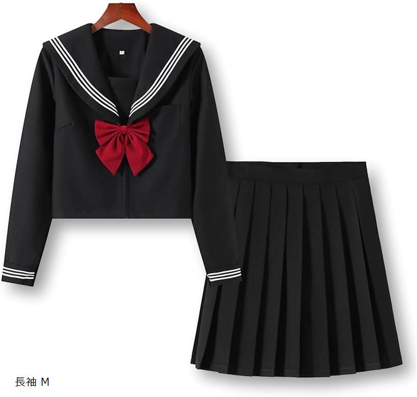 TUISKUセーラー服 コスプレ 制服 長袖 プリーツスカート リボン 3点セット ブラック 2XL L 長袖 M 長袖 XL 長袖 S 長袖 2XL