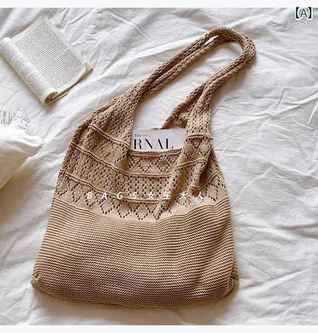 【予約販売5~12営業日での発送】トートバッグ レディース 春夏 レトロ 抜け感 透かし編み サマーニット ハンドバッグ ショルダーバッグ 布製 普段使い カジュアル 万能 軽量 ショッピングバッグ型 カーキ パープル アイボリー