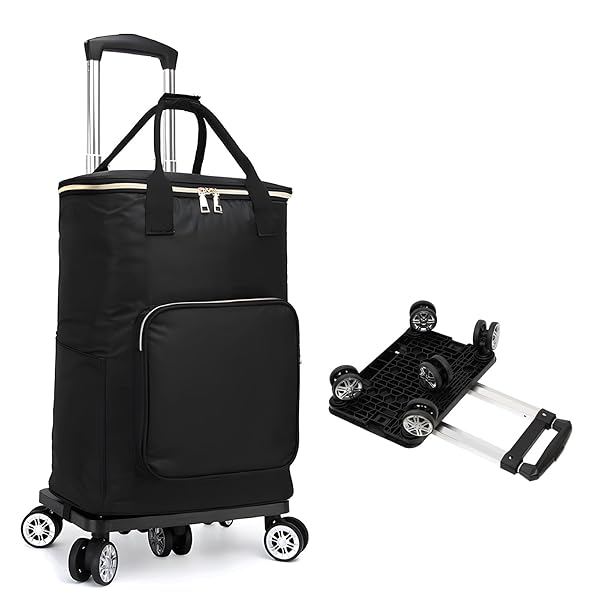 梱包サイズ:93.5cm 型番:WLBB買い物カート 5輪 ショッピングカート 保冷機能付き トートバッグ型 お買い物キャリー キャスター付き 保冷バック 保温 買い物 折り畳み式 軽量 取り外し可能 2WAY 軽量 ハンドル長さ調節3段階ブラック, 27L)